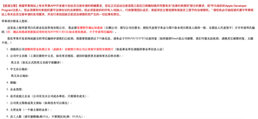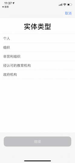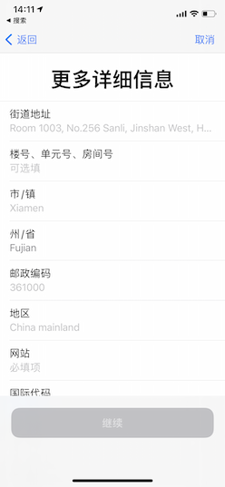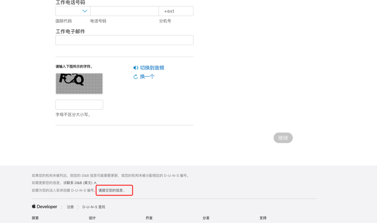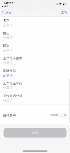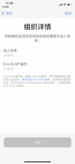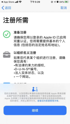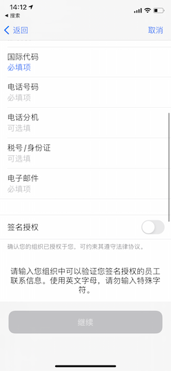 第四步:最后一步填写必要信息(此处公司官网为必填项),点击继续后,进入苹果审核
