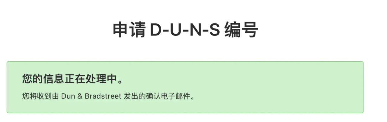 第四步:预计等待 1 天左右,邮件会收到邓白氏下发的邓白氏码